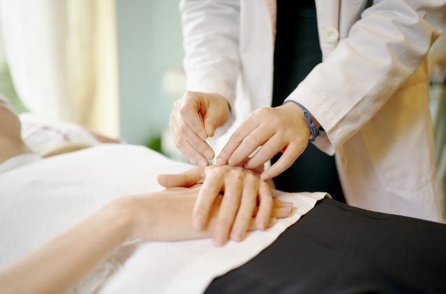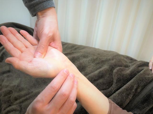 ④切診:脉診(脈診)や腹診により実際に施術者が身体に触れて観察する